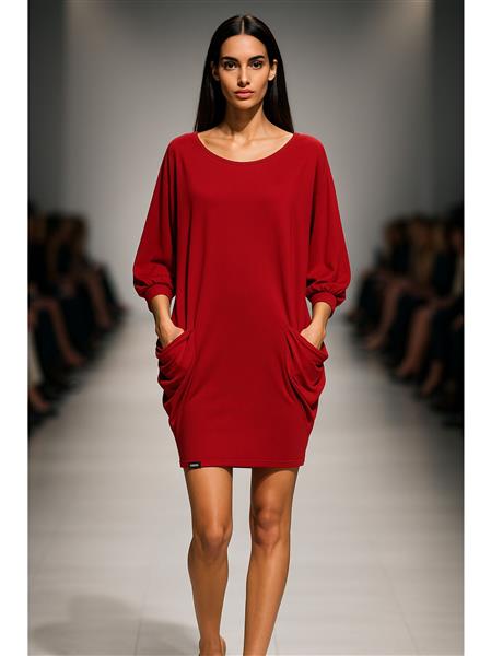 Swobodna luźna sukienka-tunika z kieszeniami